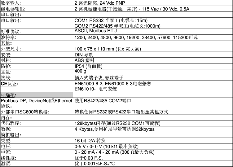 5、標(biāo)準(zhǔn)串口協(xié)議:ASCII、Modbus RTU;可選協(xié)議:Profibus-DP、DeviceNet、Ethernet