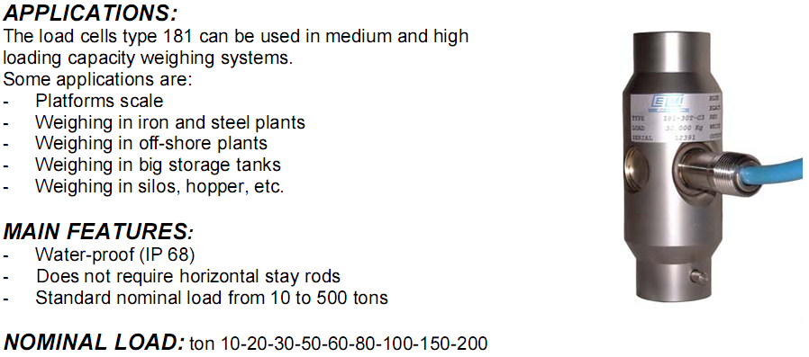 壓縮負(fù)荷細(xì)胞類型181可以在中,高負(fù)荷稱重系統(tǒng)中使用