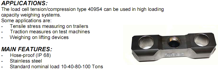 測力傳感器的張力/壓縮類型409S4可以在高負載容量的稱重系統(tǒng)中使用