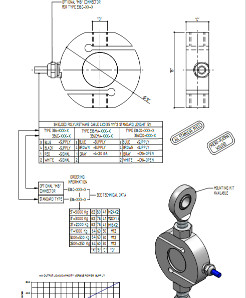 Tension/compression load cell TYPE 336 can be used in small and medium loading capacity weighing systems.