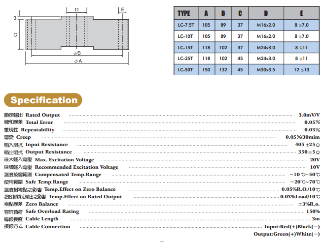 本L型荷重元( L Load cell)系最常用的力量量測荷重元,由於大面積穩(wěn)固的底座以及極低的高度,並配上高敏度剪 力感應(yīng)結(jié)構(gòu)及完全密封保護(hù),使荷重感應(yīng)達(dá)到最高之精度與敏感度,因此特別適用於精確重量測、力量測試、地磅及自動控制上,具以下之特點(diǎn): 臺灣JIHSENSE荷重元L系列(LOADCELL)型號 Type: