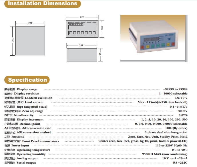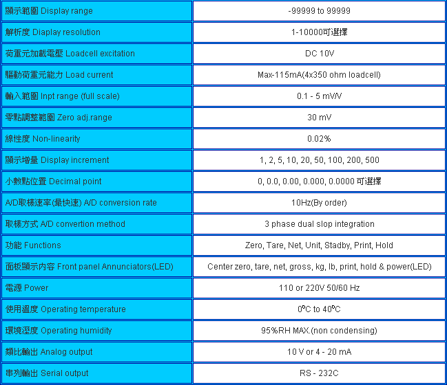 臺(tái)灣JIHSENSE JS-2200稱重顯示控制器規(guī)格: