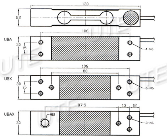 臺(tái)灣UTE UBA稱(chēng)重傳感器尺寸圖: