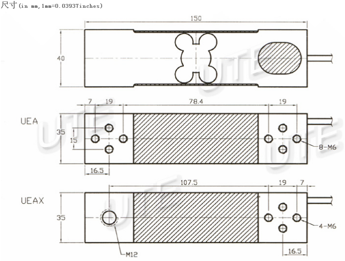 臺灣UTE URAE稱重傳感器規(guī)格尺寸: