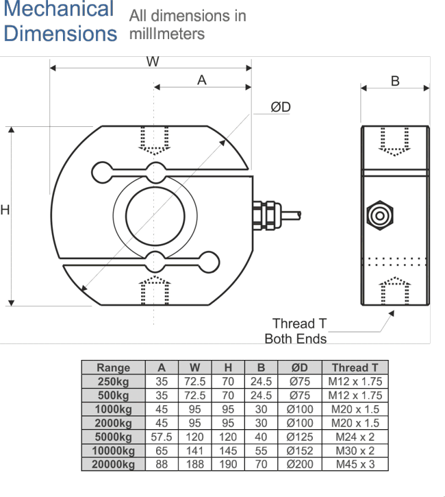 Ranges 250, 500, 1000, 2000,5000, 10000, 20000kg