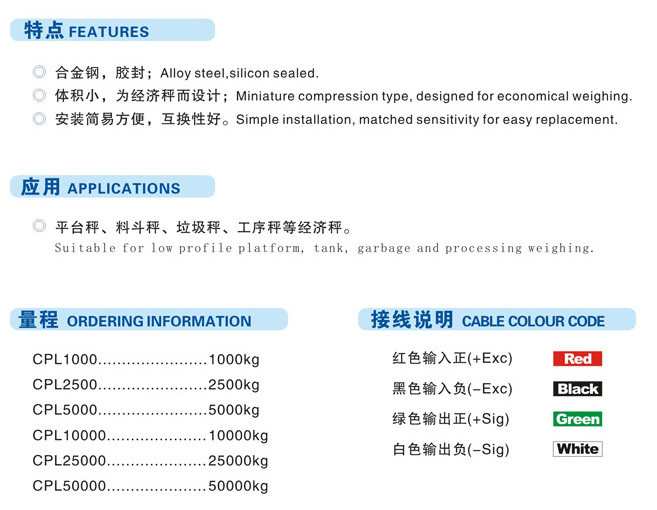 CPL傳感器,志美CHIMEI CPL稱重傳感器規(guī)格: