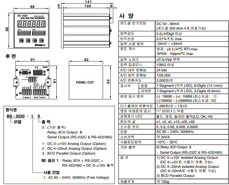 韓國Bongshin BS-3520稱重儀表技術(shù)指標