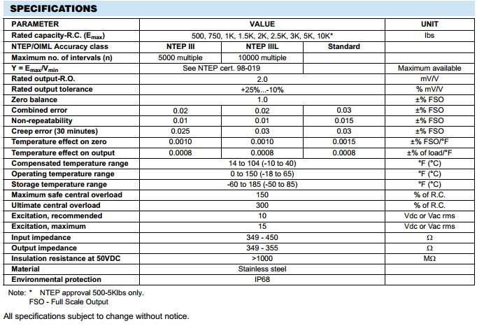 Sensortronics Model 60063 has rated capacities of 500 to 20,000 lbs. and a stainless steel, welded seal construction, designed for single or multiple load cell applications.
