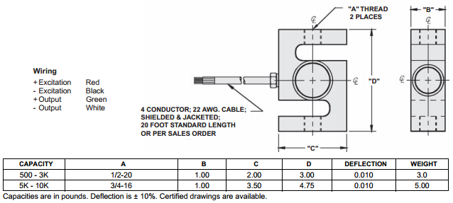 Stainless Steel Welded Seal S-Beam Load Cell Sensortronics Model 60063 is Factory Mutual System Approved for Classes I, II, III; Divisions 1 and 2; Groups A through G., with integral loading brackets and is compatible with TCM tension mounting hardware, also, Non-Incendive (no barriers!), ISO 9001 Certified manufacturing facilities.