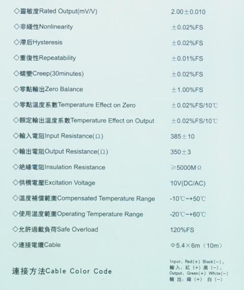 美國AC GX-2-500kg稱重傳感器技術參數(shù):