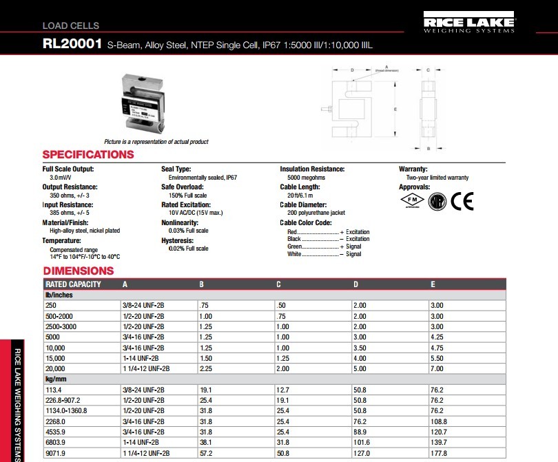 美國(guó)RICELAKE RL20001稱重傳感器參數(shù)