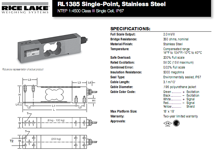 RICE LAKE RL1385稱重傳感器 此單點細胞的構(gòu)造的不銹鋼,并且被設計為在惡劣的環(huán)境中的高性能。這些功能提供了一個很好的選擇,不銹鋼所需的應用程序。