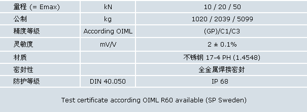FLINTEC富林泰克UB1 S型稱重傳感器技術(shù)參數(shù)