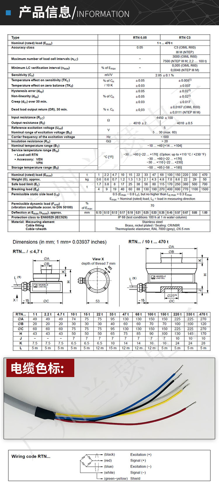 HBM RTN0.05/47T傳感器可以用于惡劣的環(huán)境中 貿(mào)易認(rèn)證型號(hào),符合 OIML R60 標(biāo)準(zhǔn),精度等級(jí) C3, C4, C5, C3MI, C4MI 有 PTB 測(cè)試證書 D09-00.24 .