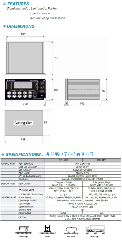 韓國CURIOSITY CTI-4100稱重顯示控制儀表產(chǎn)品參數(shù)尺寸