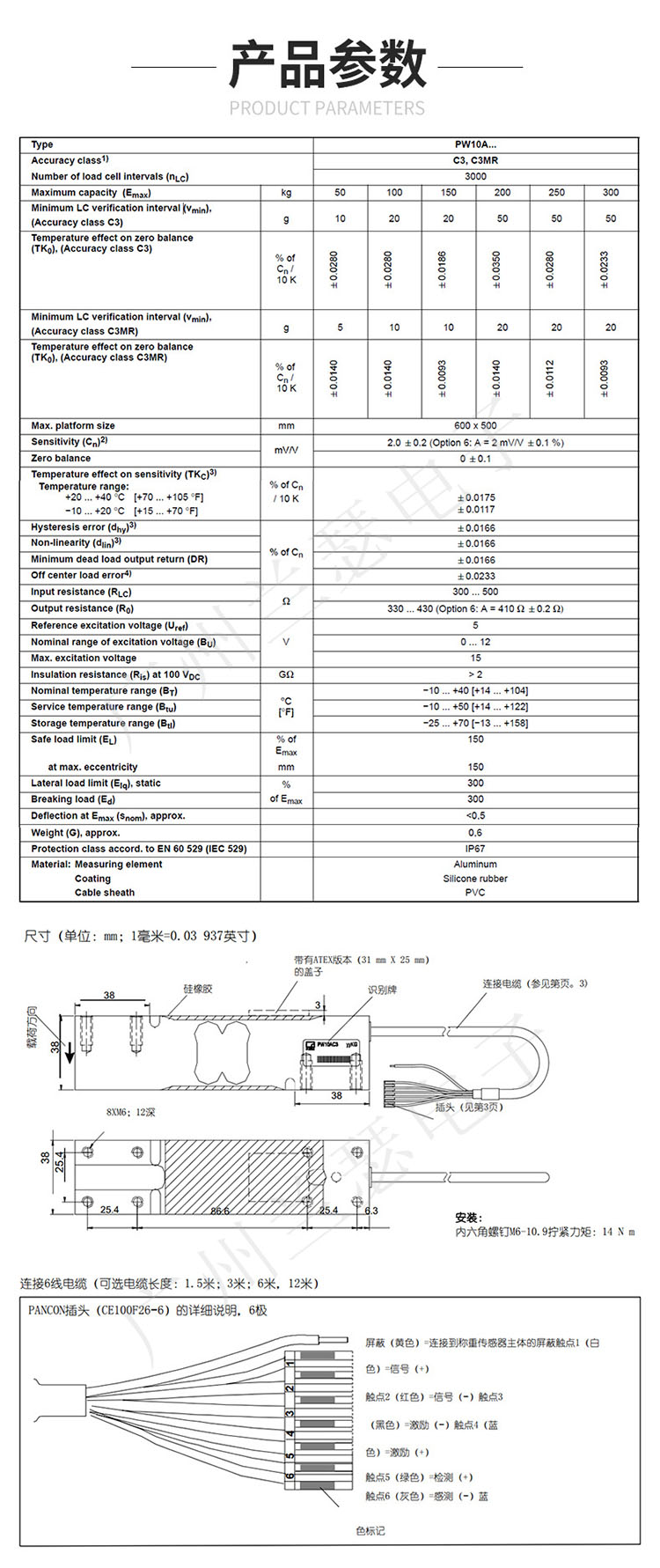 德國(guó)HBM PW10AC3稱重傳感器產(chǎn)品參數(shù):