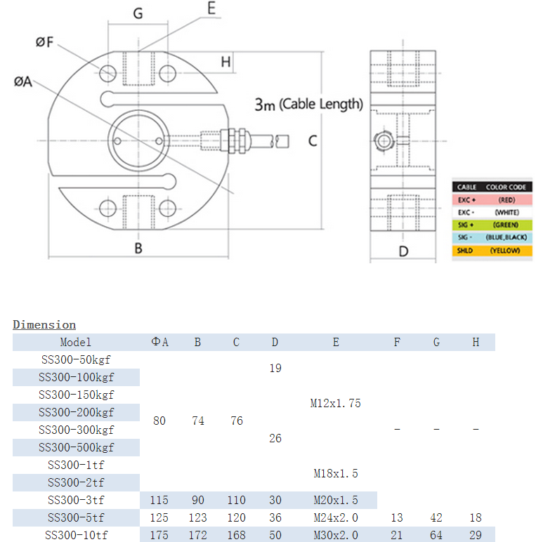 韓國SEWHACNM(世和)SS300稱重傳感器參數(shù)