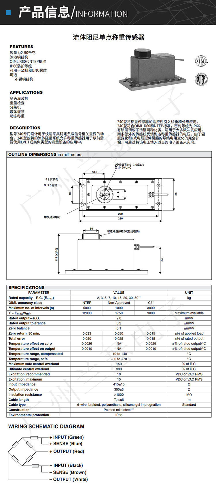 美國Tedea 240-5kg稱重傳感器產(chǎn)品參數(shù):