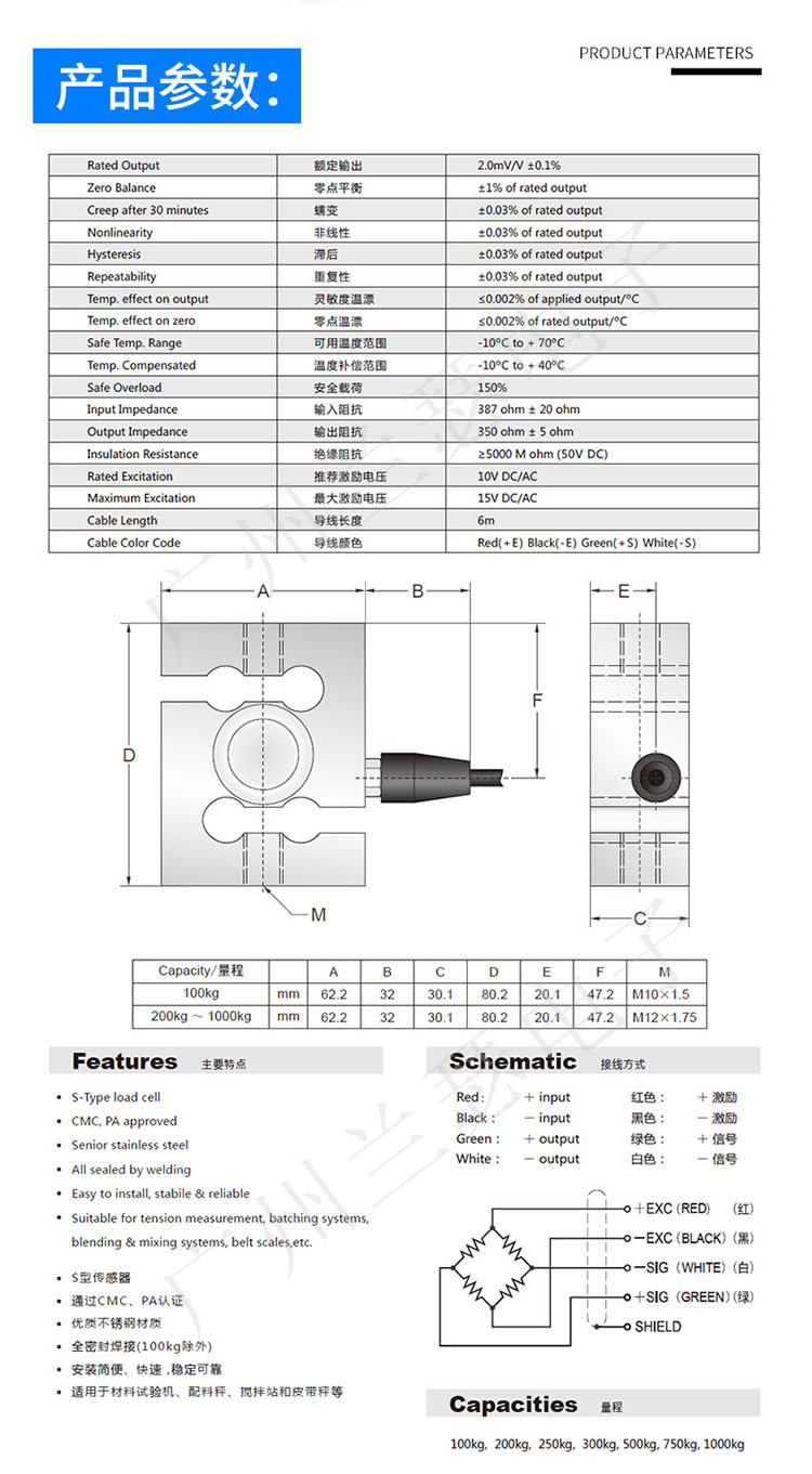 量程可選:100Kg,200kg,250kg,500Kg,750kg,1t,1.5t,2t,2.5t,5t,10t