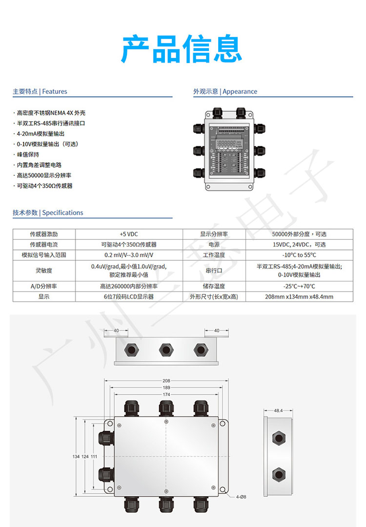 接線盒式,帶LCD顯示,模擬量輸出;RS485輸出
