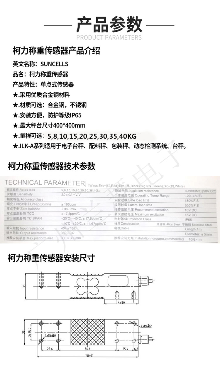 寧波柯力 ILK-35KG稱重傳感器產(chǎn)品參數(shù):