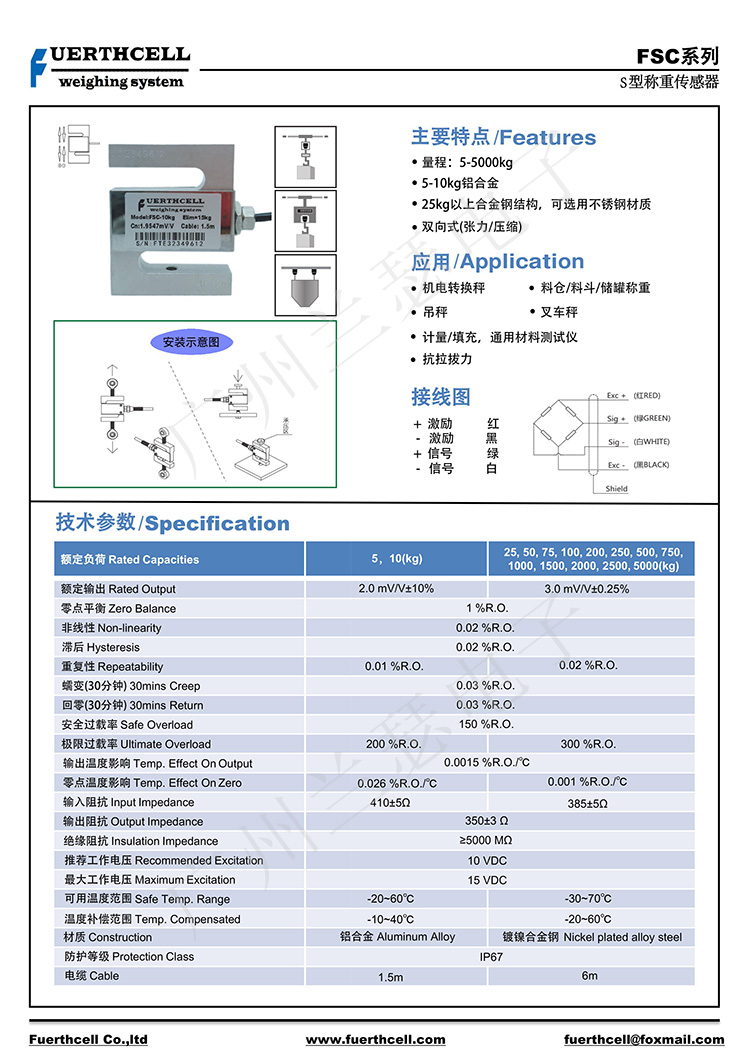 美國FUERTHCELL FSC-50KG稱重傳感器產(chǎn)品參數(shù):