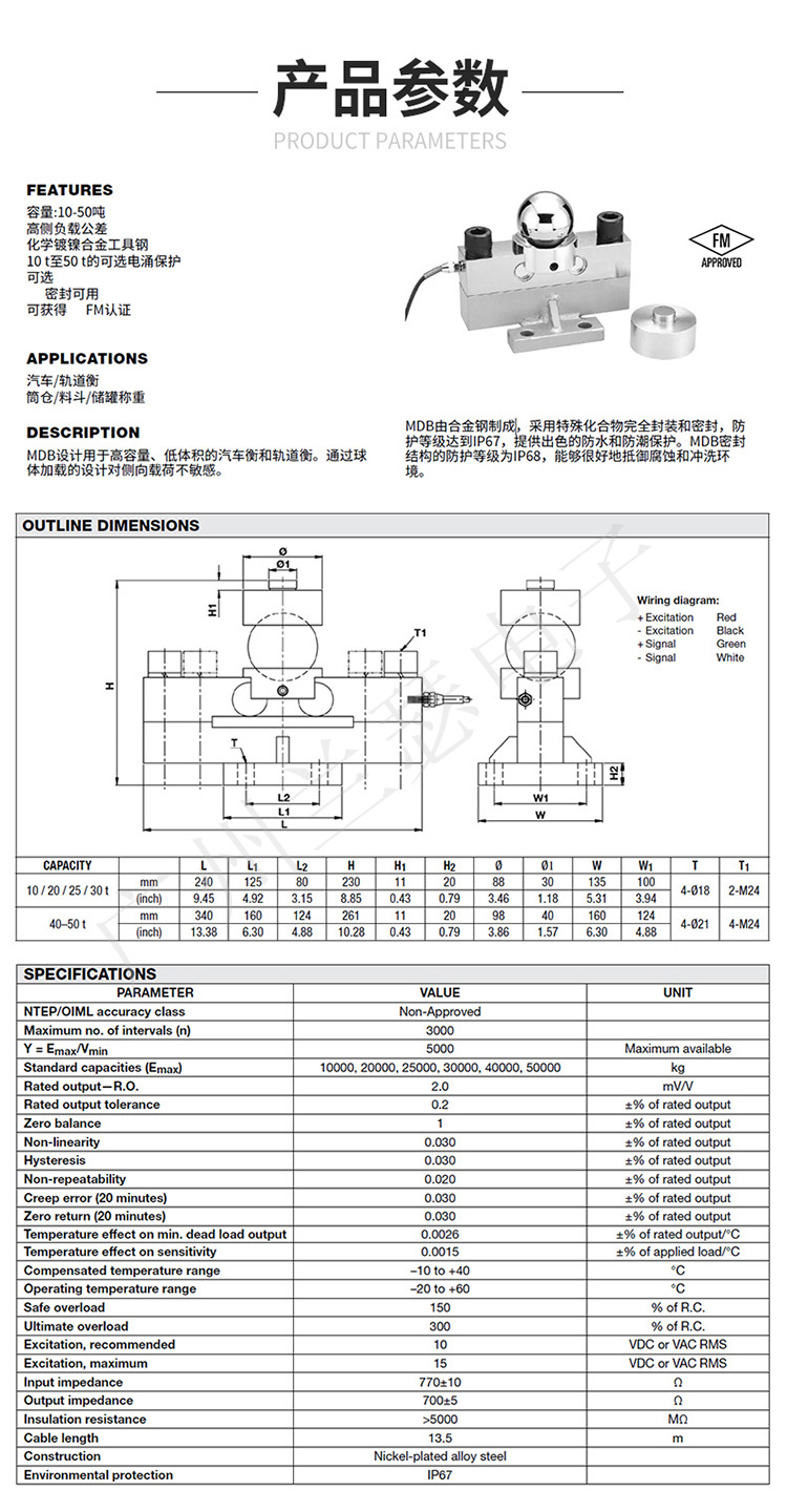 美國Celtron MDB稱重傳感器產(chǎn)品參數(shù):
