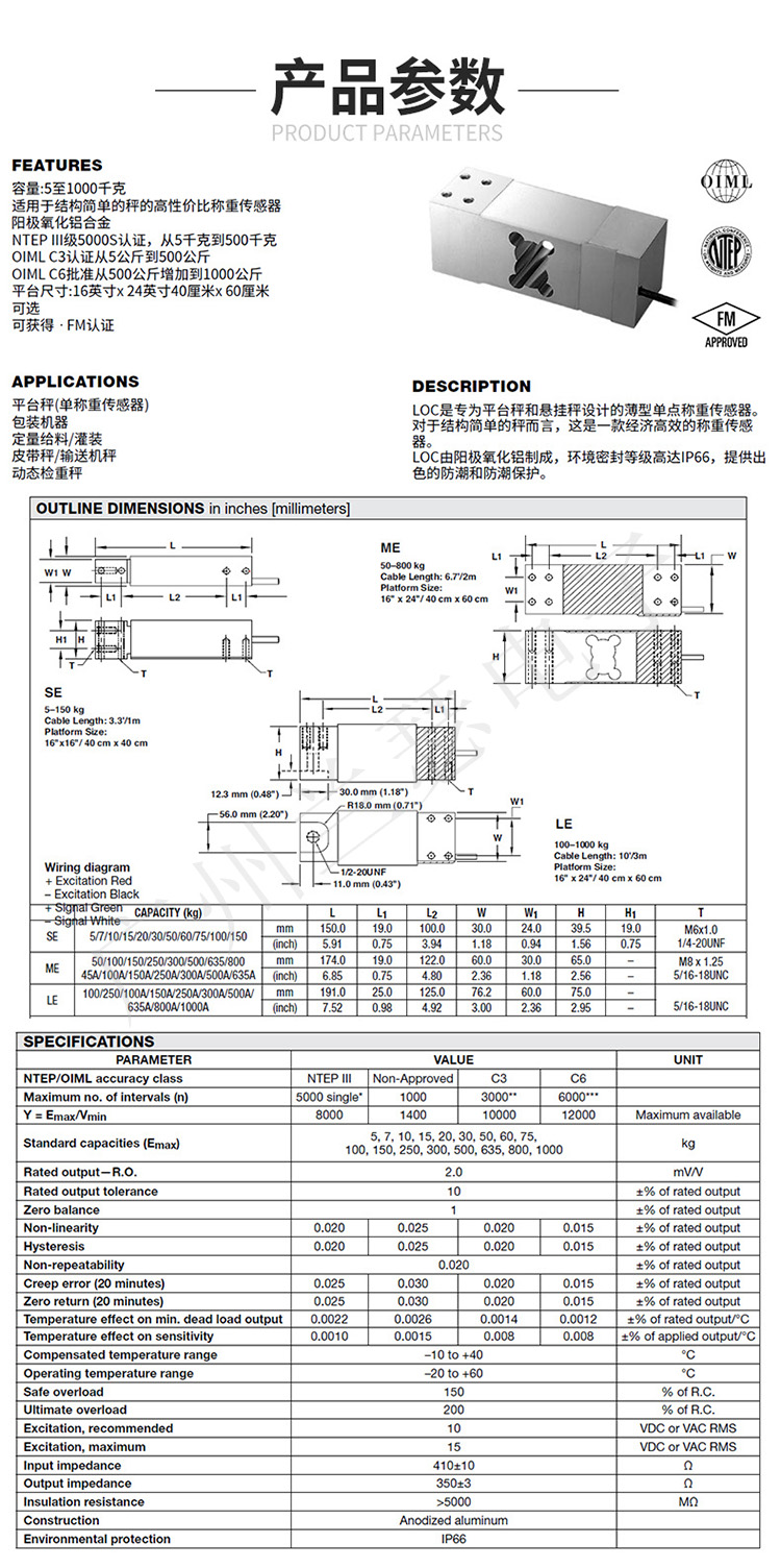 美國世銓celtron LOC-150kg稱重傳感器應(yīng)用:配料秤、定量系統(tǒng) 平臺(tái)秤、皮帶秤、商用秤、計(jì)數(shù)秤、分選秤