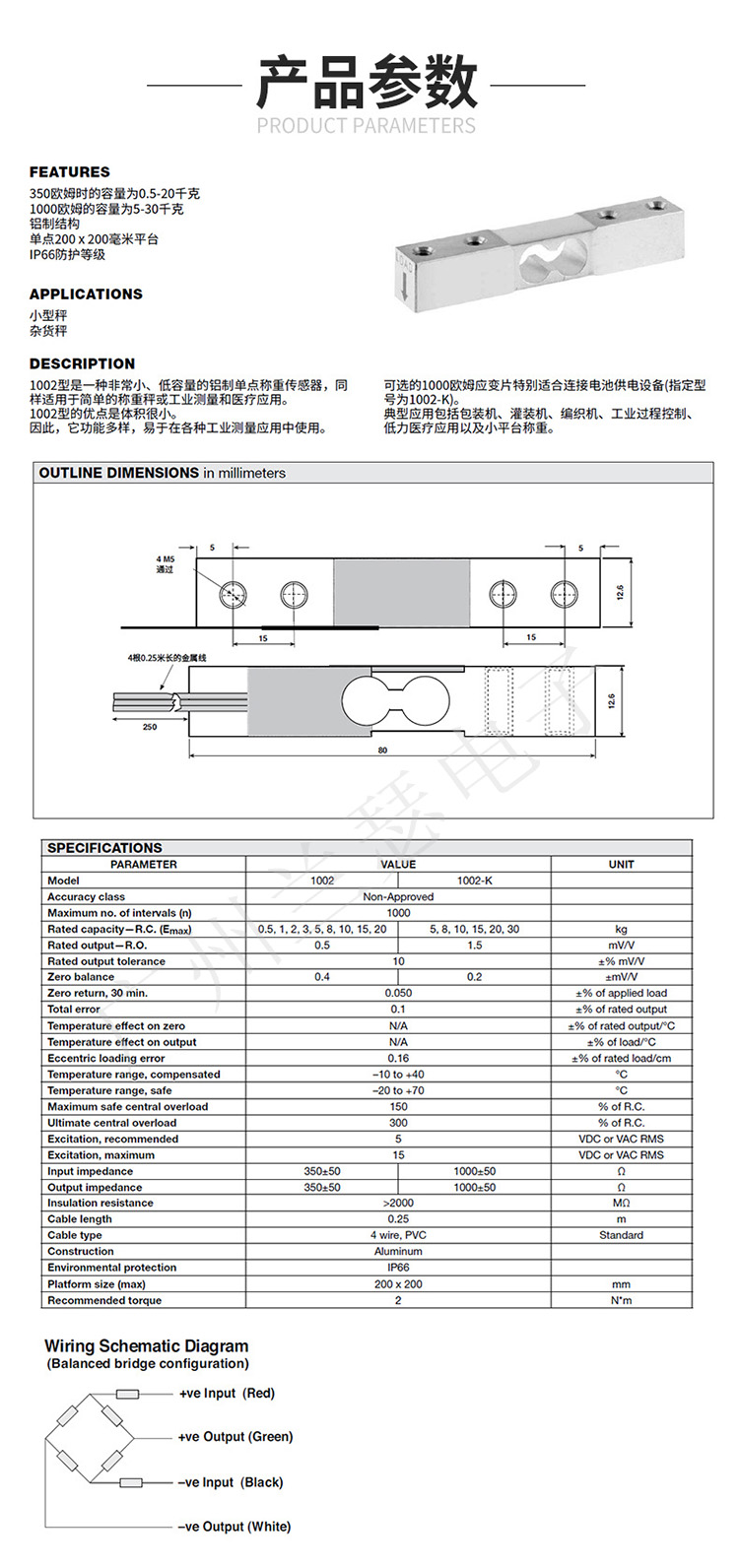 美國Tedea 1002稱重傳感器產(chǎn)品參數(shù):