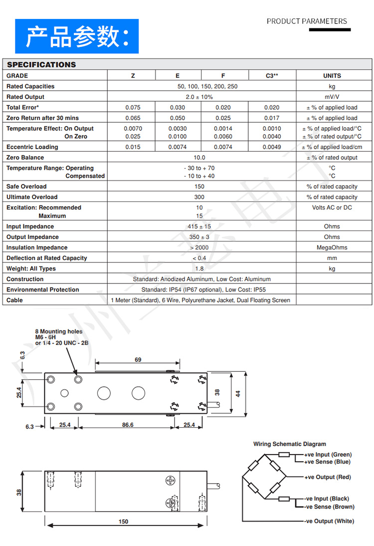 美國Tedea 1241-50kg稱重傳感器產(chǎn)品參數(shù):