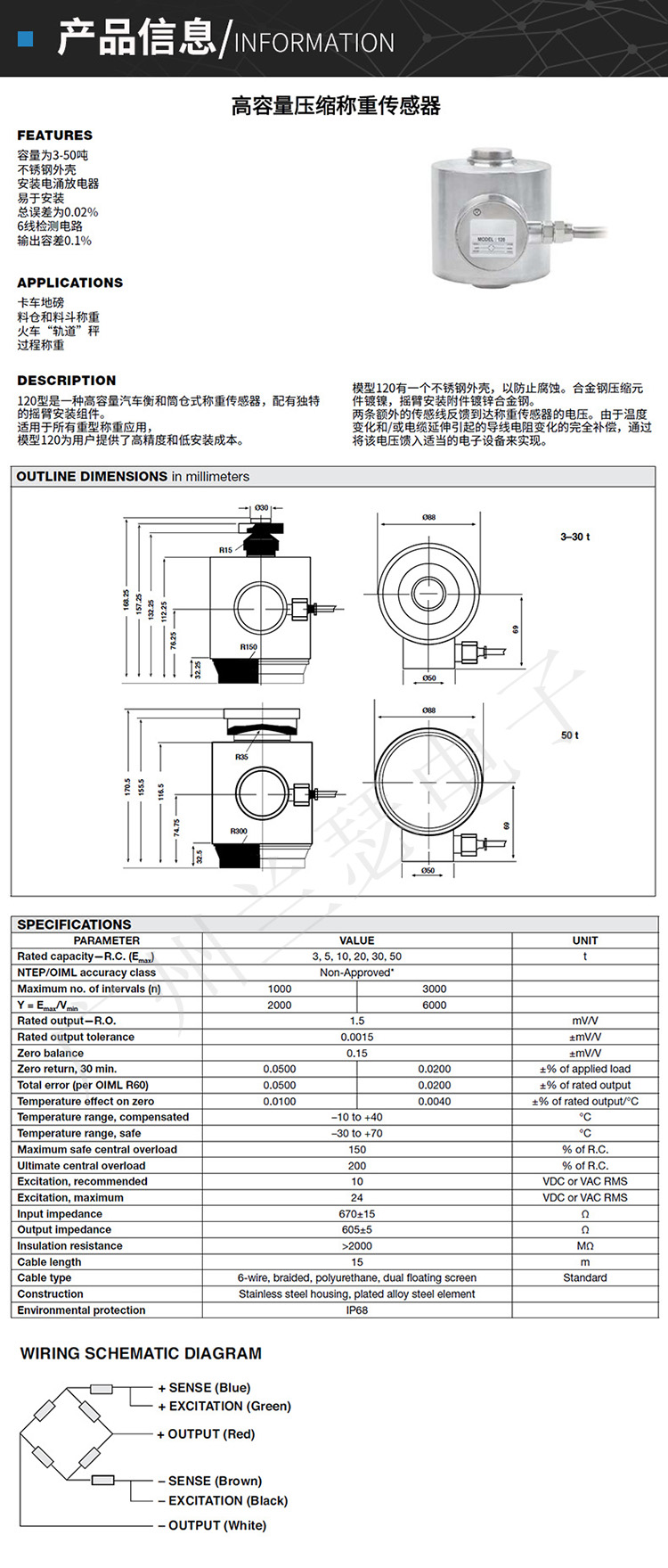 120-10T稱重傳感器技術(shù)參數(shù)圖: