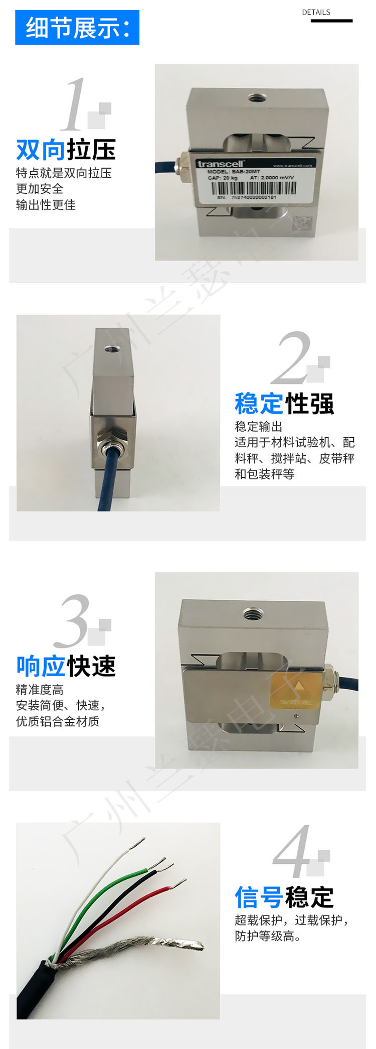 BAB-5kg BAB-7.5kg BAB-10kg BAB-15kg BAB-20kg BAB-30kg BAB-50kg BAB-75kg BAB-100kgTranscell BAB-5MT稱重傳感器BAB系列所有型號:
