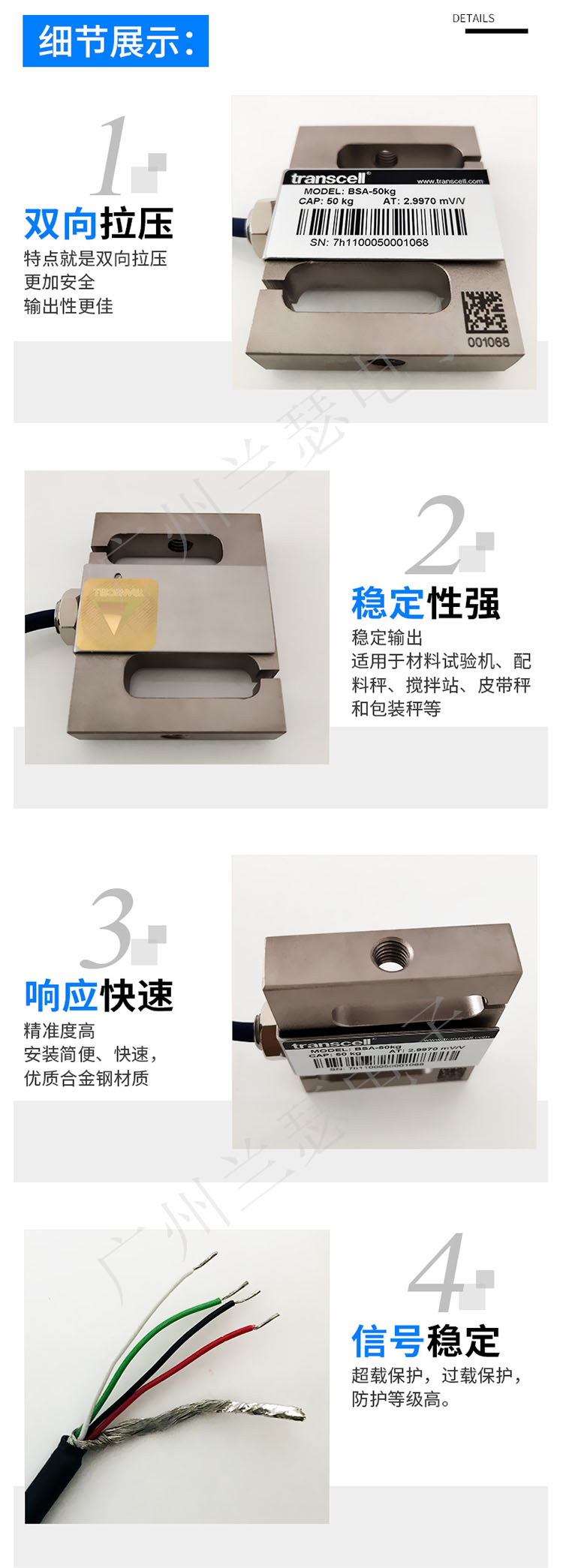 【廣州蘭瑟電子】中國代理經(jīng)銷美國Transcell/傳力 BSA-250LB稱重傳感器廠家批發(fā)價(jià)格,價(jià)格優(yōu),質(zhì)量好,貨期快。為您提供BSA-250LB選型服務(wù)和稱重系統(tǒng)方案以及全方位測量技術(shù)支持;我司與美國傳力公司合作多年,提供完善的售前、售中、售后服務(wù),保證您買得放心,用得舒心。撥打全國統(tǒng)一服務(wù)熱線:020-22157170。廣州蘭瑟電子經(jīng)銷代理Transcell稱重傳感器,Transcell傳感器,傳力儀表,傳力電子稱,Transcell失重秤,美國傳力接線盒