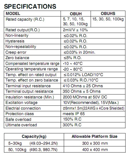 Bongshin OBUH-30KG,OBUH-50KG,OBUH-100KG稱重傳感器 |