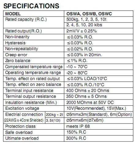 OSW-500kg,OSW-1T,OSW-2T,OSW-3T,OSW-5T,OSW-10T稱重傳感器主要特性: