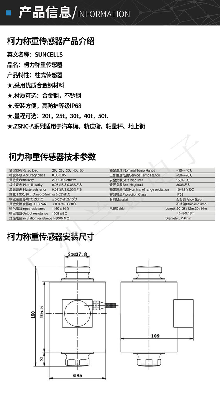 Suncells ZSNC-A傳感器產(chǎn)品型號(hào):注:ZSNC柱式傳感器,可選ZSNC-SS不銹鋼稱重傳感器、ZSNC-D數(shù)字稱重傳感器
