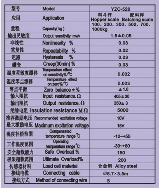 廣測(cè)GUANGCE YZC-526稱重傳感器主要特性