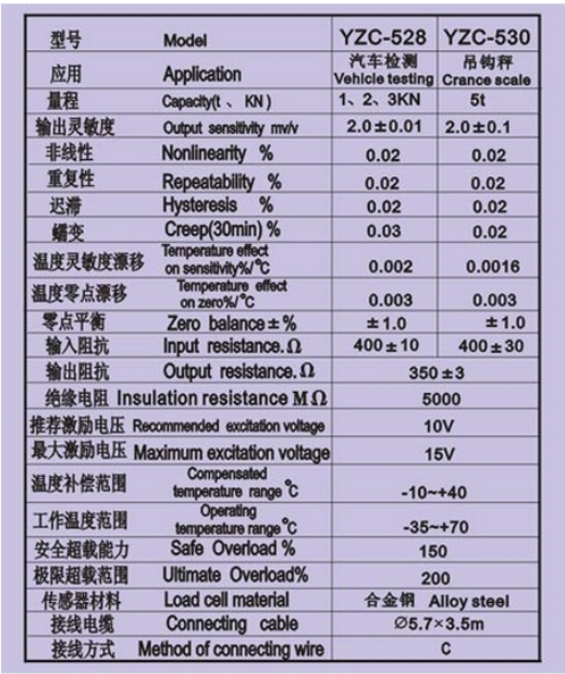 廣測GUANGCE YZC-528稱重傳感器技術(shù)參數(shù)