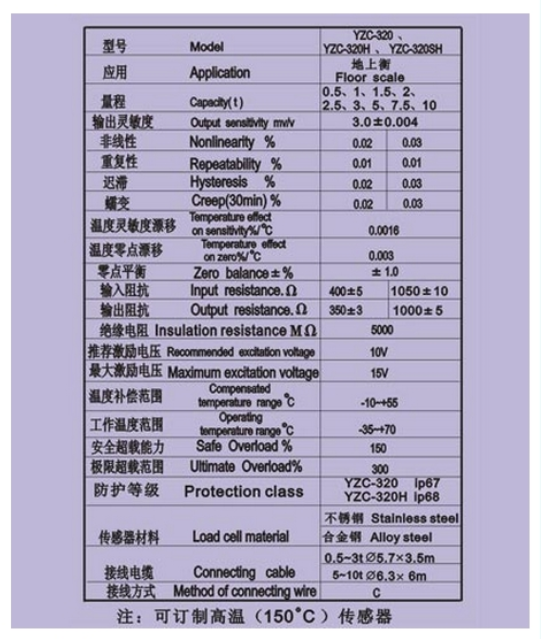 廣測GUANGCE YZC-320稱重傳感器技術(shù)參數(shù)