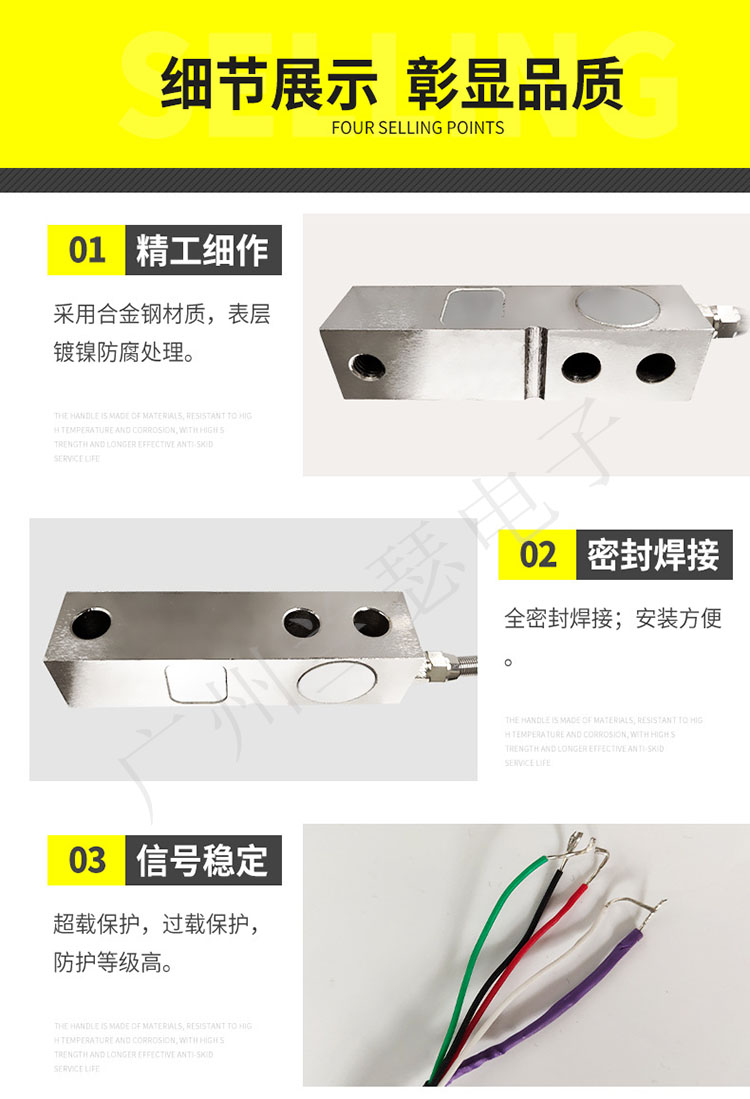 安裝簡便、快速;表層鍍鎳防腐處理;懸臂梁式;優(yōu)質(zhì)合金鋼材質(zhì);高精度;高穩(wěn)定性;獨特的承載盲孔設(shè)計;適用于平臺秤、汽車衡、配料秤、低平臺秤等。