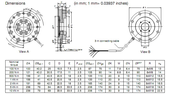 額定扭矩100 N洠, 200 N洠, 500 N洠, 1 kN洠, 2 kN洠, 5 kN洠 和 10 kN洠
