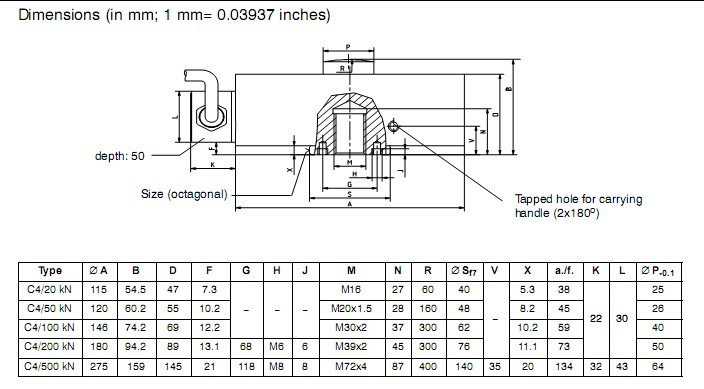 額定量程 20kN, 50kN, 100kN, 200kN, 500kN