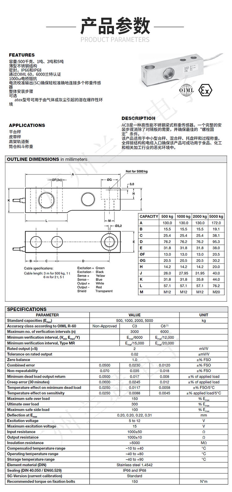 美國Revere ACB稱重傳感器參數(shù)