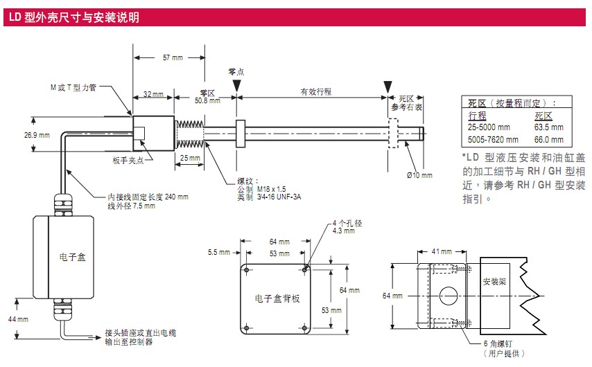 安裝 LD: 帶螺紋法蘭公制 M18×1.5 或英制 3/4”-16 UNF-3A