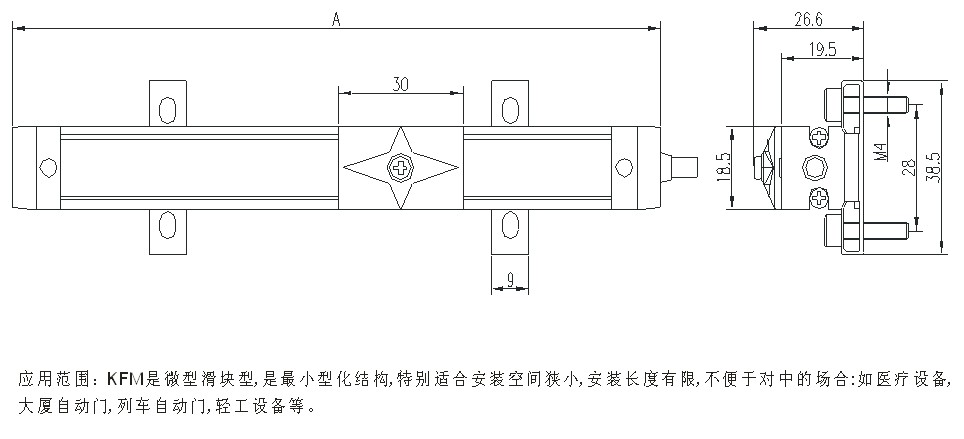 KFM微型滑塊位移傳感器,有效行程5mm~300mm,兩端均有2mm緩沖行程,精度1%~0.08%FS。外殼表面陽極處理,防腐蝕;內(nèi)置導(dǎo)電塑料測量單元,無溫漂,壽命長;具有自動(dòng)電氣接地功能。密封等級為IP54(向下安裝時(shí)IP57),有直接出線和五芯插頭插座輸出兩種選擇,可以適用在大多數(shù)通用場合,特別適用于安裝空間狹小的場合,難以保證對中的場合;允許極限運(yùn)動(dòng)速度為3m/s。
