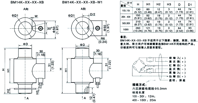 美國ZEMIC BM14K-C3稱重傳感器規(guī)格尺寸: